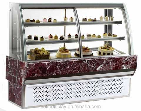2018 Venda quente Mesa De Vidro Curvo Geladeira Mostrar Bolo